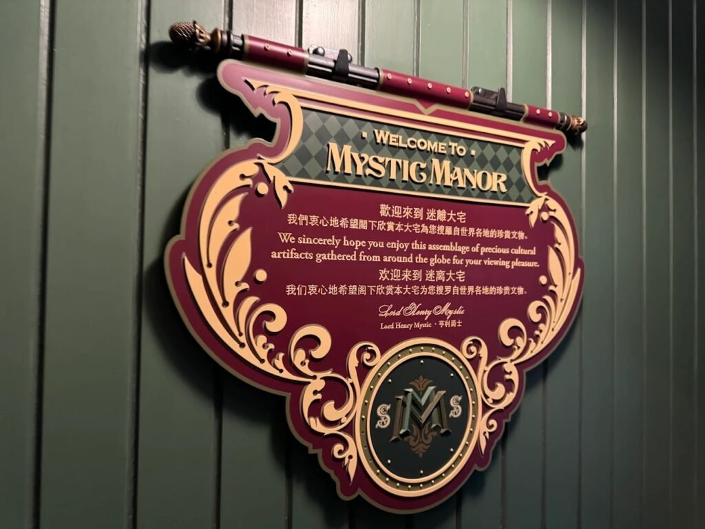 Mystic Manor adalah wahana unik dan eksklusif di Hong Kong Disneyland, berlokasi di area Mystic Point. Berbeda dari wahana klasik lainnya, Mystic Manor menawarkan petualangan interaktif tanpa ketinggian ekstrem, membuatnya cocok untuk seluruh keluarga. Di sini, pengunjung mengikuti kisah Lord Henry Mystic dan kucing kesayangannya, Albert, saat mereka membuka kotak ajaib yang menghidupkan benda-benda di manor.