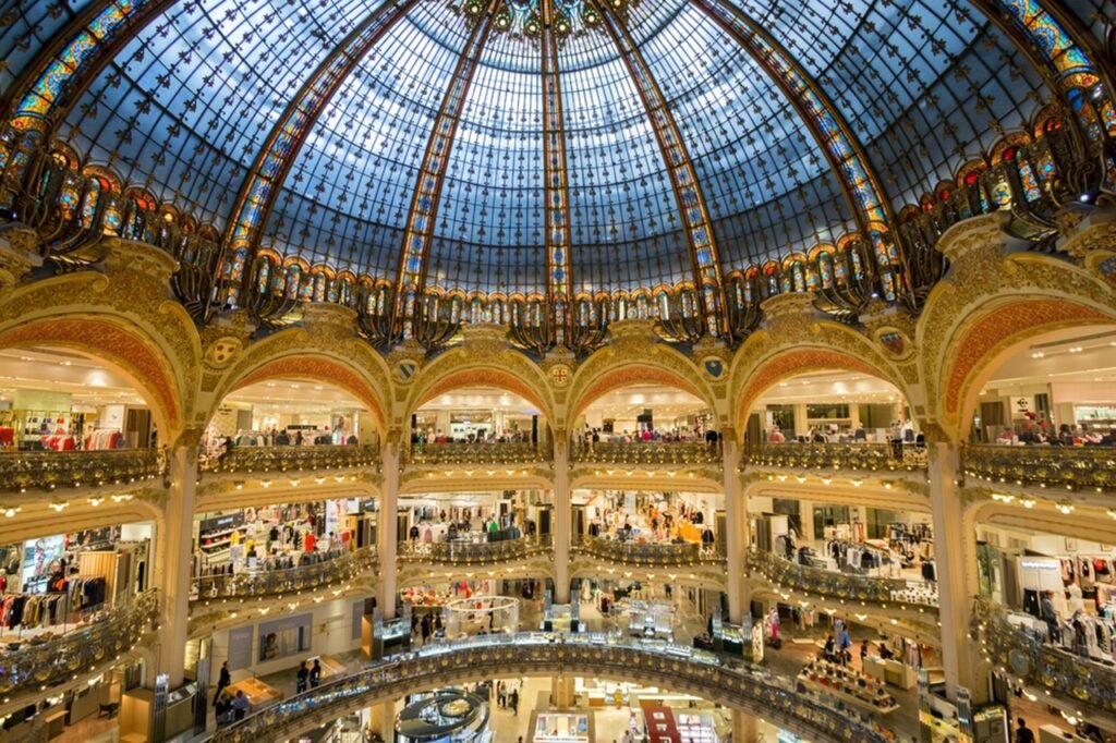 Dua pusat perbelanjaan bersejarah di Boulevard Haussmann. Arsitekturnya megah, dengan kubah kaca berwarna yang ikonik, sekaligus menawarkan pengalaman belanja mewah.